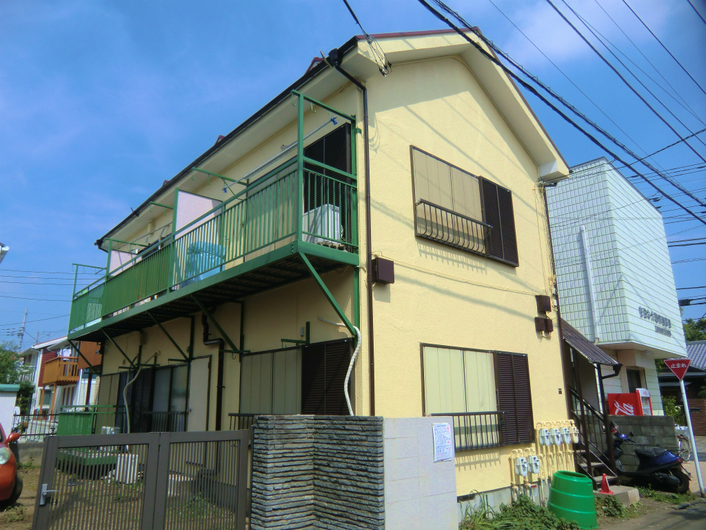 アフター クリーム色に塗り ベランダ部分は緑色にしました。